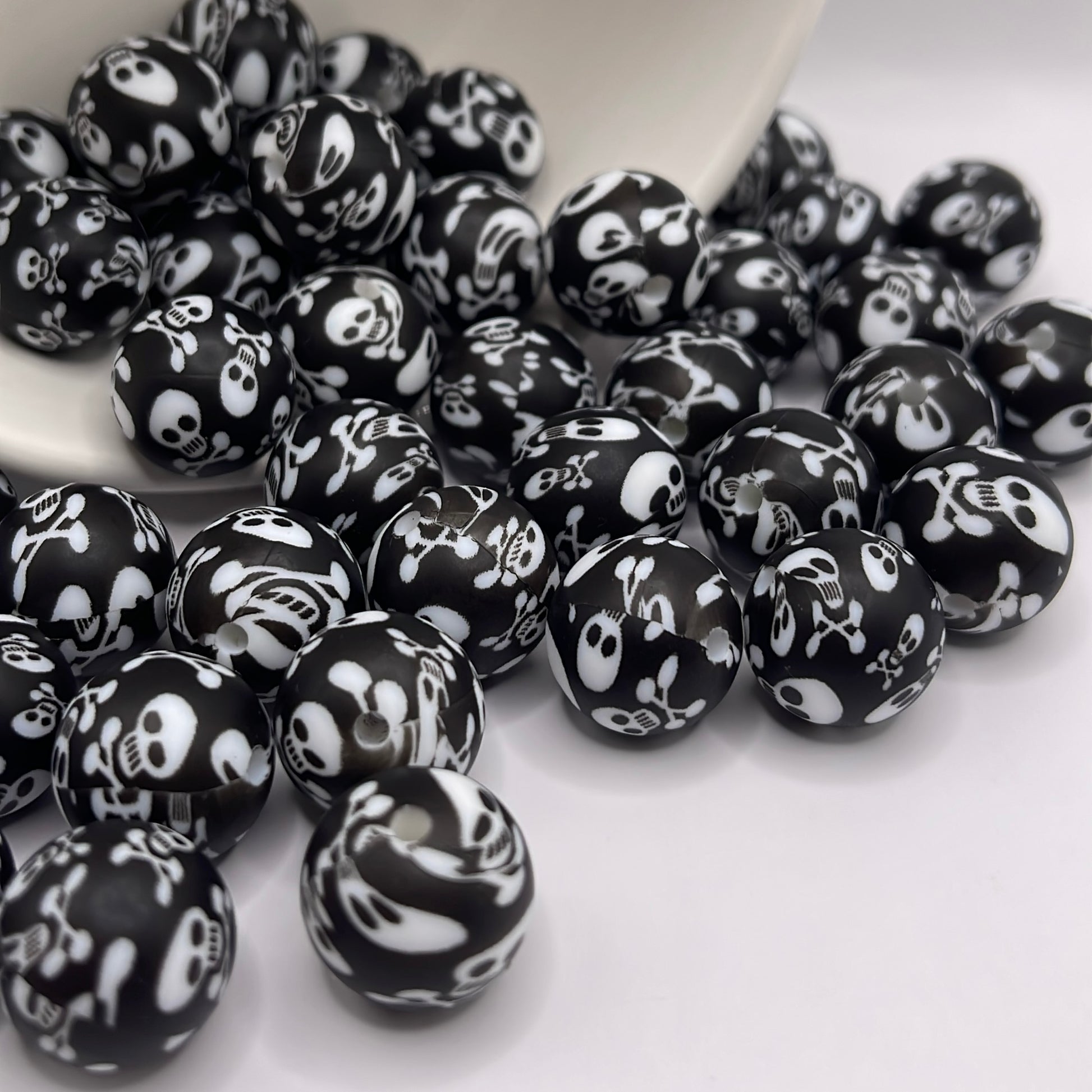 Transform your products into something extraordinary with our durable silicone skeleton printed beads. Perfect for adding that wow factor to beaded pens, wristlet keychains, bracelets, and even knitting needle ends. With a reliable 2mm hole size and easy-clean surface, these beads are ready to bring your creative vision to life.